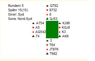 Syd må gi opp kløverholdet, kan ikke sake en ruter til, da står resten av rutern til spillerfører. Nord følger med uten problemer. På ruter dame fra spillefører er Nord ferdig. Enten tar du siste stikk på spar 9 eller så tar kløver 6 det 13nde stikket.
