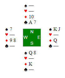 For å vinne må spillefører gå opp med ruter ess og spille trumf. Da er ruteren blokkert for forsvaret, syd sitter med singel konge og de kan ikke få fatt i ruterstjelingen.