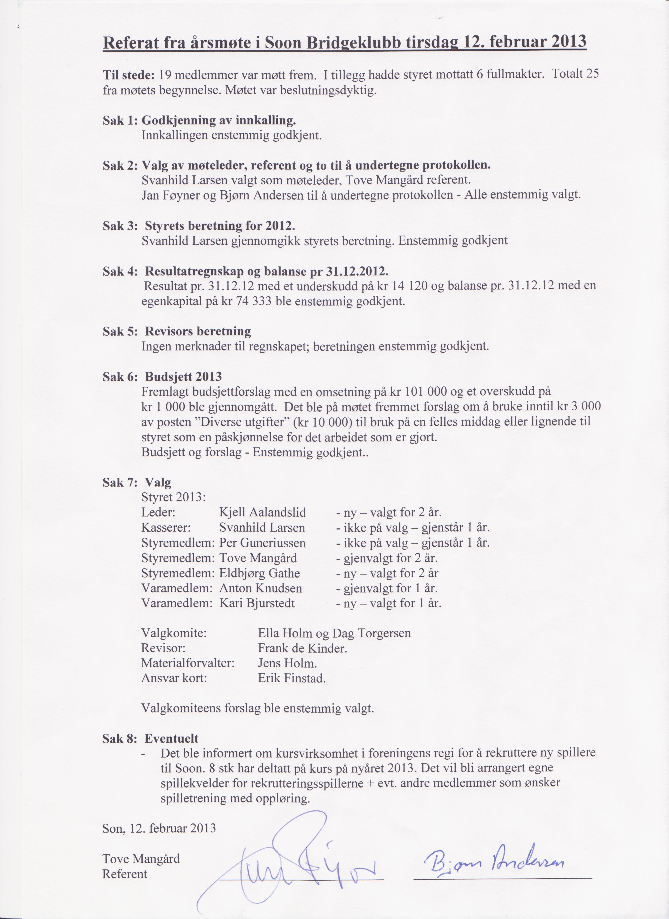 På årsmøtet vart det diskutert mogelege tiltak som kan vera med å auka deltakinga på klubbkveldane. Eitt problem som vart teke opp var at om ein spelar er forhindra ein kveld, vert makkeren gjerne sitjande heime avdi han ikkje bryr seg med å møta opp "på måfå" . Solveig tilbyr seg å vera "kontaktsentral" som folk kan venda seg til om dei manglar makker ein kveld. Skal dette fungera godt, er det nødvendig at alle melder frå til Solveig på tlf 930 34 975 så snart dei vert klar over at dei er makkerlause. Men det er og nødvendig at erfarne, og i eigne auge gode spelarar er villige til å spela ein og annan kveld med makkerar som ikkje er komne fullt så langt. Det kan vera lærerikt for dei urøynde, og vera med på å heva standarden etter kvart