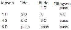 Glenn, Erlend, Allan og Terje spilte på Bridgehuset på lørdag. De møtte Lillehammer representert ved Johnny Holmbakken, Frode Johnstuen, Even Morken og Marius Bartnes. Klar seier til Heimdal 140-61.