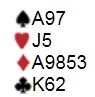 Ukas spill er selvfølgelig henta fra sist tirsdag. Du sitter syd, og lar øst få spille 1NT. Du har derfor utspillet, og regjerer over følgende blader: