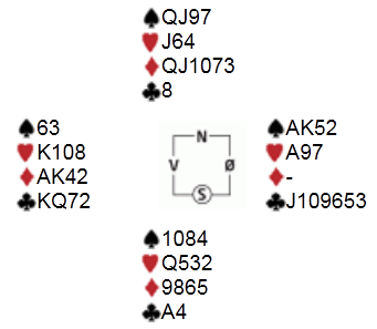 Du bør lese forrige artikkel først, der vi omhandlet pølseskvisen. Så skal vi se hva som egentlig skjer når pølseskvisen begynner å virke. Alle korta var disse, og pølseskvisen er i funksjon når blindemannen spiller sine kløver til bunns: