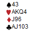 Jeg tror de aller fleste er enig i vest sin første dobling, selv om ti honnørpoeng er minimum for det en kan ha. Doblingen viser en balansert hånd som både kan ha og ikke trenger ha major. Alle 4-3-3-3 hender dobles det med og flere mener at med 4-4 major bør en også doble for å finne åttekort tilpass i stedet for å havne på 4-3, i verste fall 4-2. Det er mange hender makker dobler 3ru på uten å ha begge major. Melding av major i stedet for dobler, bør være femkort. Tom Høiland: "Jeg hørte at du og luringen ikke var helt enig om posisjonen, så derfor vet jeg ikke om jeg tør si noe mer enn at jeg passer i alle fall ikke. 4ru er krav" Boye Brogeland: "Jeg synes du finner fine posisjoner å diskutere, Snorre. Her har ikke jeg og Espen heller avtale, så da bruker jeg min sunne fornuft. Det betyr at 4ru er passbart og jeg har kliss minimum for min dobling. Jeg er ikke redd for å melde det jeg tror er rett, men her hadde jeg nok fort løfta til 5ru for sikkerhets skyld. Jeg har tross alt fine honnører. På den annen side kan makker melde noe annet enn 4ru hvis han er 100% sikker på at vi skal spille minst utgang. Vi bør prøve å gjøre det lett for hverandre. Jeg har også forståelse for at mange vil si at 4kl/4ru bør være krav i pressa posisjoner, men jeg spiller ikke slik. Mener Silla har en sånn avtale" Geir Brekka: "Jeg spiller 4ru som krav når det er tvil. Nå har jeg minimum og løfter til 5ru" Espen Lindqvist:" "Usikker og har faktisk ikke avtale, men mener det bør være krav. Jeg tror makker ville meldt firekort major foran ruterfarge i denne posisjonen, så derfor tipper jeg han har 3-3-6-1. Jeg løfter til 5ru"
