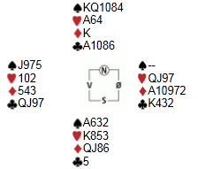 Klubbens overhode har vært i Fredrikstad på stormøsntring, og et og annet har hun vel plukket opp; undertegnede og makker fikk ihvertfall gjennomgå i ukas spill, og teknikken var finslepen. Trine spilte nord, og fikk hjerterdame ut mot 4 spar: