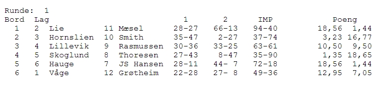 Magne og Simon vann 1. kvelden. Resultat 12.11.