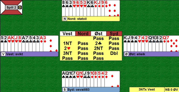 Dette fine spillpoenget kom jeg over på nettstedet BBO. Her kan du spille med og mot spillere fra hele verden, og er et fint tidsfordriv for den som er litt mer ivrig.
