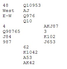 Svein Gunnar spiller ut ess, konge og dame i spar. Jeg stjeler spar dame, for så å legge ned ruter konge, fulgt av ruter til ess og ruter til stjeling. Om man ikke stjeler spar dame, vil det være vanskeligere å finne den aktuelle ruterstjelinga.