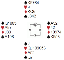 Sittende NS klarte jeg og makker å bråbremse i 3 hjerter i syd, noe som viste seg å være lurt etter at bordet kom ned. At vi var heldige og fikk ett ufortjent overstikk etter tre ganger kløver ut med sparavkast betydde lite. Ved de tre andre bordene klarte samtlige spillere NS å kapre ti stikk, men med den enkle forskjellen at alle var i 4 hjerter istedet....