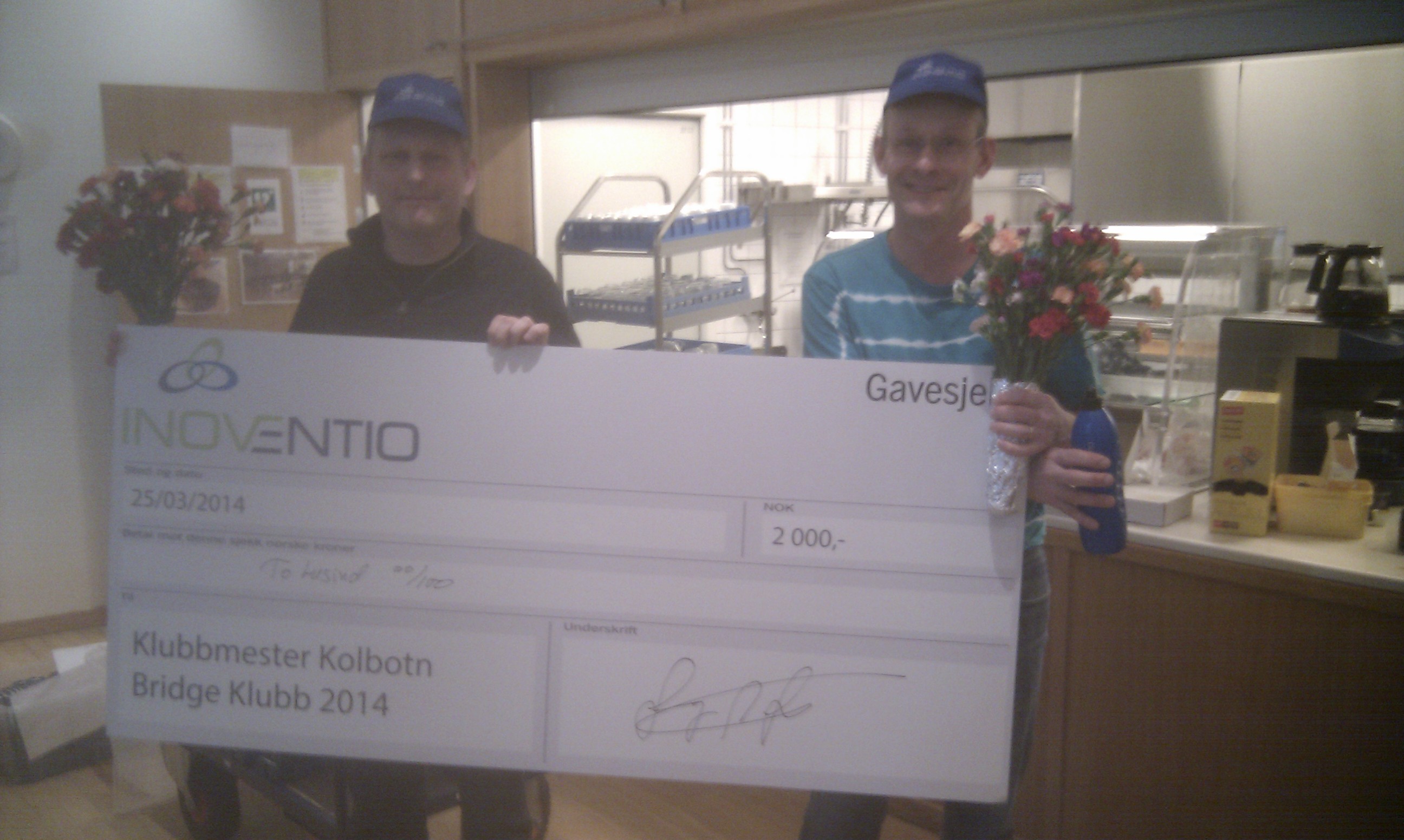 Her ser vi de glade klubbmesterene for 2014, med sjekken fra Inoventio, som sponset premiene i år som i fjor.