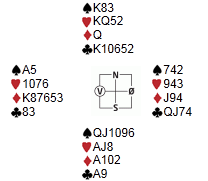 Jeg har tidligere tatt til orde for at rutinerte spillere ved bordet har et ekstra ansvar om å ivareta de mindre rutinerte. I går kveld var jeg selv en dårlig "ekspert", og finta ut makkeren min i en kritisk fase. Kirsten satt syd og skulle spille sparkontrakt, hjerter-10 kom ut fra vest: