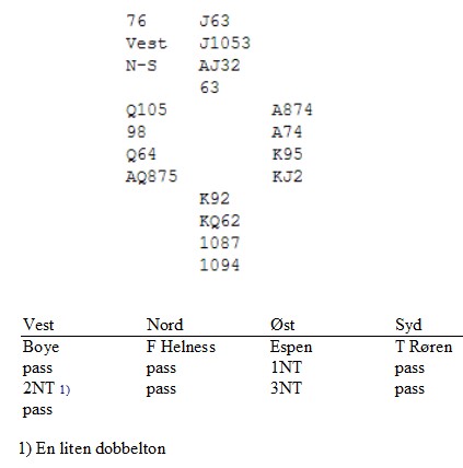 Boye har sendt meg disse. I det ene tråkker han selv på 5hjx i innbyrdes mot vinnerne, Gunn Helness og Ida Wennevold. Det andre er et fint spill av makker til sommerens EM, Espen Lindqvist. Jeg lar Boye fortelle selv: