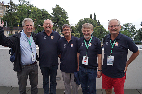 Før siste kamp så det ut til at seniorene måtte kjempe om 2. plassen i innledende Monrad, men en kjempeseier mot Danmark samtidig som Polen gikk på en smell mot Belgia førte våre herrer rett til topps! Nå tar de med seg flest VP av alle de ti lagene som går til finalespillet. Jeg har ikke fått det bekreftet, men tror de får ca 20 VP med videre. Deretter får lagene etter de litt mindre helt ned til 10. plassen som får 0 VP. Nå har jeg tro på EM-gull! Resultatliste I morgen har det åpne- og damelaget fridag, mens seniorene skal spille følgende kamper: 10:30 mot Polen på BBO 14:30 mot Sverige på BBO 17:20 mot Irland på BBO Seniorene spiller altså hele dagen på BBO! Glade gutter! F.v: Peter Marstrander, Helge Mæsel, Tor Bakke, Arve Farstad og Roald Mæsel. Rune Anderssen var ikke tilstede da bildet ble tatt. Danske Christina Lund Madsen som er reporter for EBL ville ta en "selfie" med seniorherrene!
