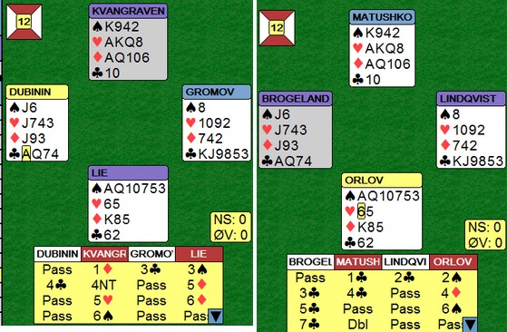 I kampen mot Italia meldte Espen og Boye en veldig tøff 6 kløver: