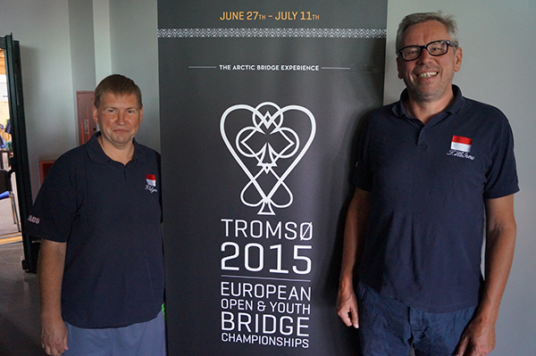 I dag starter finalespillet for det åpne laget, mens damelaget fortsetter Round Robin. Merk at det i dag er andre spilletider pga valget i EBL, kampene starter 12:30, 15:20 og 18:10. Monaco med Geir og Tor i spissen vil spille alle tre kampene på BBO, mens Norge vises kl 15:20. Vi gleder oss! Geir og Tor skal til Tromsø neste år, men først skal de spille tre kamper på BBO i dag!