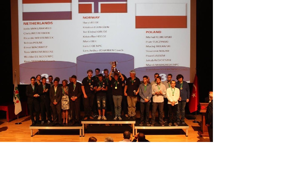 Marcus Scheie representerte sist uke Norge som en av fire spillere i junior VM U - 20 i bridge i Istanbul Tyrkia. Og for en innsats - gutta spilte fletta av de fleste lag og endte tilslutt op en flott bronseplass hvor de i bronsekampen formelig utklasset Frankrike med score 151,5 mot 78.