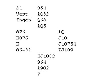 Premiepotten var på svimlende en million EURO etter at alle de litt over femti parene hadde blitt auksjonert bort. Tor og Geir var det mest betrodde paret og ble solgt for nesten 50.000 EURO (ca 400.000 NOK), mens en god del av de andre måtte kjøpe seg selv for 5000 EURO. I tillegg kom startkontingenten på 1500 EURO, så dette er ikke akkurat sommerbridge. Helness og Helgemo fikk en svært tung start på turneringa og lå en stund sist. Da det nærmet seg finalespillet, var de i nærheten av å være blant de tolv beste, men de måtte ta til takke med B-finalen. Der ble de nummer to bak russiske Gromov - Dubinin. De andre norske parene klarte heller ikke å prege turneringa. Vi husker at Hoftaniska - Charlsen i fjor ble sist og denne gangen hadde jeg tro på dem. De lyktes heller ikke denne gangen og vaket hele tiden i den siste fjerdedelen. Erik Berg hadde lagt igjen flaksen hjemme og sammen med Steffen Fredrik Simonsen var de blant de beste om en snudde resultatlista på hodet. Roar Voll og Asbjørn Kindsbekken lå en stund bra plassert, men det ble for ujevnt. Som jeg skreiv i går var det Berg - Austberg som kan være litt fornøyd til slutt. Dere vant en sterk C-finale og kunne hente premien på 11.000 EURO. Alle resultater finnes oppe til høyre. Ja, hva skal vi si om dette da? Det føyer seg nok dessverre inn i rekken av bekreftelsen på at det er et stykke opp og fram. Parene vil sikkert forklare med utdrag og at makker ikke var på høyden, men det er resultatene som teller i det lange løp. Det som er bra er at norske par tar steget ut i verden og tør måle seg med de beste. Vi må tåle å få juling, så får vi håpe at pilene peker oppover etter hvert.