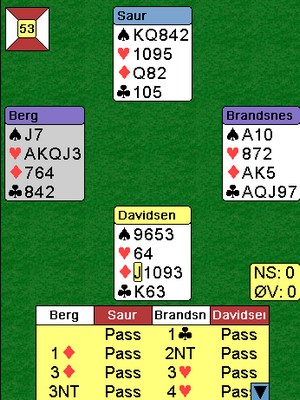 Lørdag 11. oktober inviterete Bridgesenteret til singelbridge m. sidekos. Etter tilbakemeldinger å dømme, var dette et arrangement vi må gjenta oftere. 54 spillere hygget seg gjennom 32 spill og kyllinggryte. Alle spilte sammen, men vi delte inn i to premierekker. I A vant Borgar Lunheim, mens Leif Erik Hoel Stabell vant B gruppen. RESULTATER