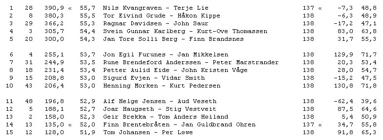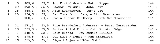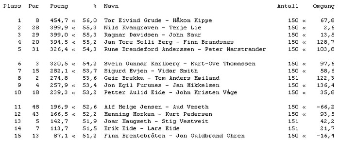Fullstendig resultatliste her (kortfordelingane manglar denne gongen).