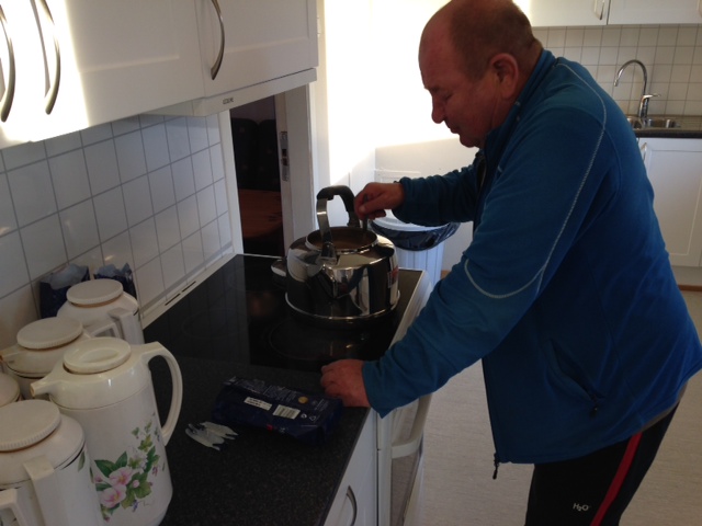 Svein er alltid tidlig ute å koker kaffe så den er klar til spillingen begynner