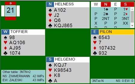sa Geir Helgemo til den franske motstanderen. Han redobla og det endte med elleve stikk (kunne holdt han nede på ti) for den litt ukjente scoren +1800.