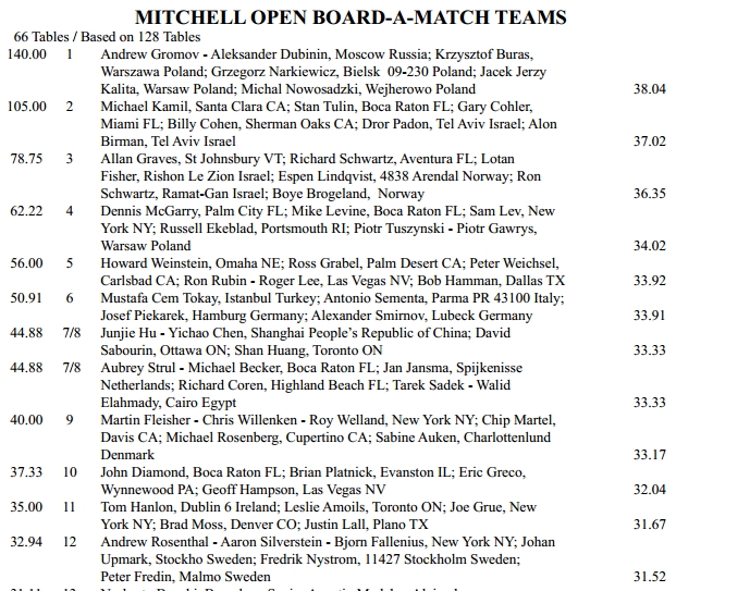 Det er flere norske med i begge disse turneringene, men jeg har ikke full oversikt. I tillegg til de "vanlige" vet jeg at Jan Tore Berg - Per Erik Austberg er med. De skal spille Blue Ribbon først og så Reisinger på lag med Peter Marstrander og Rune Andersen. Kristian Ellingsen og Tor Eivind Grude skal sikkert være med videre og BIN forteller om et Rogalandslag med Ståle Frøyland-John Helge Herland og Espen Anfinsen-Erik "Guttungen" Eliassen stiller. HER ER PROGRAMMET. Link til resultater oppe til høyre, men de er ikke oppdatert.