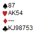 Dette spillet er rapportert inn fra singel-turneringa på tirsdag, og sjeldent ser vi lignende finesse i spillet. Tord er en av våre nyere spillere, og viser stort engasjement og interesse i spillet selv om det nok fortsatt trengs litt øving før overstikkene sitter der de skal. På tirsdag briljerte han imidlertid med en ny type sperreåpning, og det var mer enn nok til å spille Odd Helge ut på sidelinja. Du kan først få alle korta og tenke ut i hvilken himmelretning Tord kan ha plassert seg for sin svake sperremelding på 2-trinnet:
