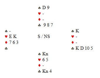 Over 1 ruter som naturlig ville jeg også ha vurdert (og kanskje valgt) å melde 3 hjerter, men da vil makker forvente minst 4-korts rutertilpasning, og man risikerer å komme i feil minorutgang (om makker ikke har et godt hjerterhold). På den annen side kan man finne en flott ruterslem ved å ”støtte” med ”bare” EDx, og kanskje får man senere mulighet til å foreslå 6 kløver som kontrakt, så 3 hjerter som Splinter har mye for seg også over 1 ruter som naturlig.