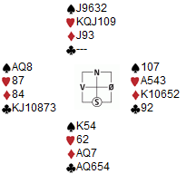 Undertegnede og makker slapp billig unna i klubben, men måtte blø på landsbasis i dette spillet forrige tirsdag. NS satt Trine og Bjarne.