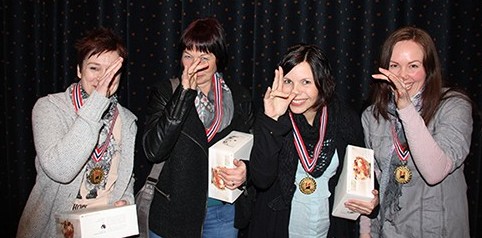Jeg var ikke helt heldig med mine tips i fjorårets NM og på seierspallen sendte Tonje, Tone, Gunn Tove og Stime denne "hilsnen" til meg. Jeg tar ingen sjanser i år og utroper "Hells Angels" som favoritter. ANdre lag som kommer til å hevde seg er "Gunsmoke", "Heskje" og "Lakk og Lær". Ikke heng meg dere andre når jeg bommer. Det aller mest spennende er å se hvordan nivået hos juniorjentene er. De har gjort framskritt, men det er vel et stykke opp til de aller beste enda? MER INFO PÅ NBF sin side __________________________________________