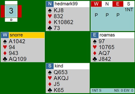 Snorre Er Bridgens offisielle blogger og er en urokråke for NBF med sine meninger, men ligger også mange fine spill og tips her. Siden har nesten daglige oppdateringer.
