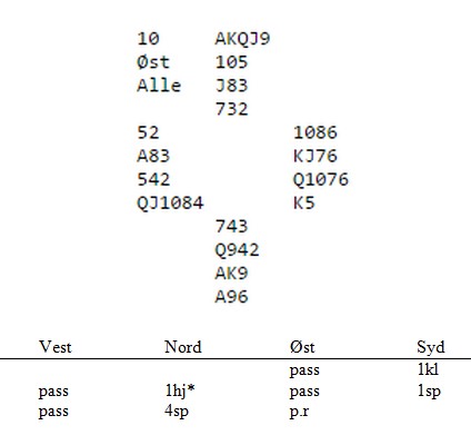 LIVE RESULTATER ____________________________________________________________________ Lag "Busken" vant. en klar seier i den sterke lagturneringa i Trondheim. Gratulerer til Marius Skree, Stig Dybdahl, Rogeir Paulsen, Baard Kåre Græsli og Sjur Arne Bøe. Jeg har ikke fått noen bilder, men blir glad hvis jeg får en mail eller link. Jeg har satt av morgendagen til å skrive om spill, fordi jeg regner med Klukken kommer til å forvente at jeg sitter klar med kvesset blyant. Jeg får legge meg tidlig i kveld, fordi dette kan bli en hard jobb. Kanskje ikke den største prestasjonen i verden? med bridge handler ofte(st) om godt håndverk og det å kjenne igjen posisjoner. Allan Livgård forteller meg om dette spillet hvor han satt øst. Makker Terje Aa ville ikke spille ut kløver siden det kunne se ut som motpartens farge: Ruter var et heldig utspill for spillefører. Syd vant med esset og spilte spar til bordet. Hjerter derfra. Nå måtte Allan opp på kongen(!) for å spille kløverkongen. Legger han liten, forsvinner inntaket til det andre kløverstikket når spillfører lasjer kløver en gang. En kløver i bordet forsvinner på hjerteren. Småpent av Generalsekretæren. _________________________________________________________________________