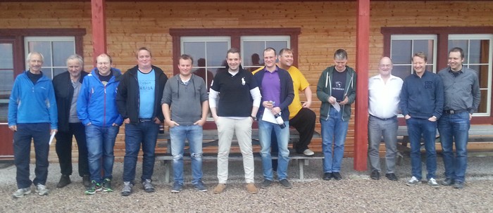 De tre beste lagene fra lagturneringa på lørdag. Vinnerlaget i midten, med sølvvinnerne til venstre og bronse til høyre. Fv. Åsmund Sandkjernan, Roald Engzelius, Eirik Sandkjernan, Steffen Brynhildsvoll, Even Morken, Kåre Bogø, Marius Bartnes, Ove Andersbakken, Anton Reynir Gunnarsson, Per Gøran Birkenes, Frederic Wilt og Håvard Heimset Larsen.