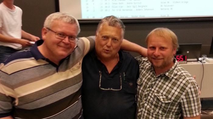 Gratulerer til Sigurd Evjen - Vidar Smith som vant foran Allan Livgård og Stig Dybdahl. Et spill eller to mottas med takk. RESULTATER ____________________________________________________________________ Vidar Smith, BJørn Sture Valen (arr) og Sigurd Evjen. (Foro: Harry Arne Vågen)