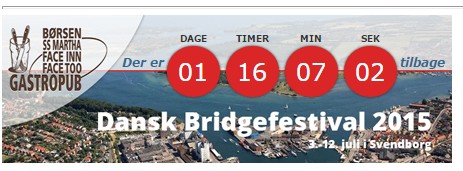 som har sin Bridgefestival midt under åpent EM. De starter 3.juli og holder på til 12.juli.Da skjønner vi litt mer hvorfor det er så få dansker i Tromsø, men absolutt en sak å ta opp i etterkant med det danske bridgeforbundet. Ikke noe greit, spør du meg. _________________________________________________________________________