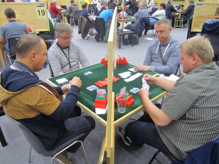 Hvordan har dere det? Jeg har snakket med mange deltakere i løpet av dagen og tilbakemeldingene er stort sett de samme. Det arrangementtekniske er upåklagelig og turneringnene går smertefritt. Selve spilllehallen er også flott, høyt under taket og god plass mellom bordene. Det var kaldt de første dagene, men det er ikke noe problem lenger. De fleste klagene på temperaturen under mix kom fra spanske og italienske spillere, så en trenger ikke å være rakettforsker for å skjønne noe av problemet. Servering og kantine har jeg heller ikke hørt annet enn positivt om. Resultatservice er annerledes enn de vi er vant med, men det funker. Ingen får spillstensiler og slipper, men de som ønsker kan gå til printere som er plassert sentralt, dra adgangskortet og få utskrifter av sine spill med resultater. Vi norske savner BUTLER, men det er visst ikke alle utlendinger som er like opptatt av den. Det flere kommentere er at det er liksom ikke så mye "stil" over lokalene. Toaletter er sånn som en finner på festivaler for ungdom og når en kommer til Mackhallen, får en liksom en bakgårdsfølelse. Jeg vet ikke om dette er viktige ting, men dere deltakere er litt rare også. Det skal være så billig som mulig, men det gjør ikke noe med litt luksus? På en annen side er det kanskje ikke billig , 800 EURO pr. lag er godt betalt og da kan en kanskje kreve noe? Det kommer spill i løpet av kvelden, men jeg har ikke rukket å se så mye i dag. Kommer sterkere tilbake med kampreferater når sluttspillet starter. Åpen klasse Det er ikke all verdens av norske flagg på resultatlistene, men vi må da for all del håpe på minst ett lag i sluttspillet. Det er flere norske spillere bak de grønne flaggene (GILLIS med Kvangraven, Lie og Odin Svendsen, NORALIA med Sveindal - Rasmussen, ERICHSEN med Espen Erichsen, Erlend Skjetne, Erik Berg og Steffen Fredrik Simonsen). Omtrent 120 VP vil holde til sluttspillsplass og det er viktig å ikke tape (stort) i de to siste rundene. HER KAN DU SE LAGENE OG HVEM SOM SPILLER