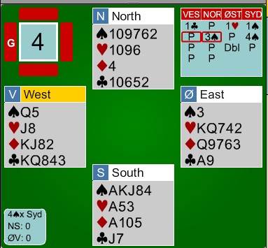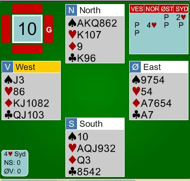 Øst spilte ut kløver knekt som løp til Nords dame. Nå la Pål ned spar ess, og da Vest la knekten, spilte han spar til åtteren!