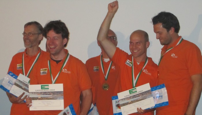 Anton Maas (cpt), Ton Bakkeren (coach) Bart Nab, Tim Verbeek, Danny Molenaar, Bob Drijver Christer Kristoffersen er en lokal bridgeinteressert laksefisker. Han var lovende ved bridgebordet på 90-tallet, men som laksefisker er han i følge mine kilder magisk. Han er også levende opptatt av å ta vare på villaksen i norske elver og da uttykker han i kommentarfelltet at han synes det er underlig av premiene i EM er giftig oppdrettslaks.