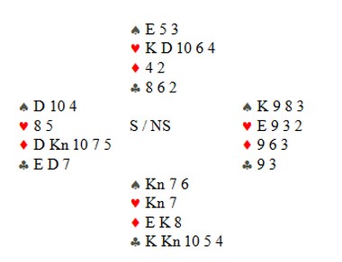 Jeg har en kritisk artikkel i dagens bulletin der jeg stiller spørsmål ved EBL sin beslutning om ikke å sende BBO fra damenes og seniorenes parfinalen. Argumentet er visstnok at det er ingen som gidder å se på. Hørt på vas!! EBL har en plikt til å vise bredden i arrangementet og i en slik beslutning ligger det en nedvurdering av en svært viktig del av bridgen. Gjennomsnittalderen er snart seksti år både i NBF og EBL. I tillegg er en økende andel av medlemmene kvinner. Derfor skal det bare mangle at de skal få sin velfortjente andel av tiden på BBO, om det så ikke skulle trekke fullt så mange tilskuere som Helgemo - Helness. Kvaliteten av det som presteres i disse to klassene er sikkert noe mer ujevn enn i åpen klasse, men etter timer og dager med nesa i skjermen der såkalte "toppspillere" har spilt kontrakter på både 4-2 og 3-1 tilpass, kan også slike spørsmål diskuteres. For veteraner og damer er det interessant å se på veteraner og kvinner som spiller kort. Alle kan heller ikke drible som Messi eller skyte som Ronaldo. Skulle media tenkt slik, ville det blitt få fotballkamper fra norsk Tippeliga. Se bare på dette motspillet av Petter Lindqvist og Johnny Holmbakken: Mot 2hj i syd (svak 1NT og overføring), spiller Petter Lindqvist i vest ut ruterdame til esset. Svakhet fra øst. Hjerter til kongen vinner stikket og så kløver fra bordet. Den går ti 9, knekt og dame. Petter skifter til spar fire som kongen vinner. Kløver tre til tier og ess, fulgt av kløver til stjeling. Spar 9 går via knekten til bordets ess. Nå går spillefører hjem på ruterkongen og fortsetter med kløver kongen i posisjonen under. Planen er å kaste sparen i bordet, men Petter legger i hjerter åtte til overstjeling med tieren. Nå kaster Johnny i øst den siste ruteren sin. En liten hjerter fra bordet stikker han med esset, spiller makker inn på spardamen og får trumfhøyning på nieren når Petter spiller ruter. To beit og stor applaus herfra. Johnny Holmbakken og Petter Lindqvist