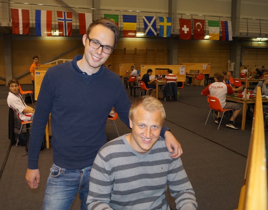 Christian Fredrik Johnsen (12) og Marius Dalemark Austad (13) slo til med 71,3 % i den tredje sesjonen av U16-turneringa i Ungdoms-EM.