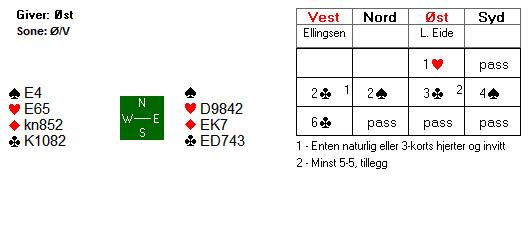 Aktuelt spilte Kristian hjerter ess og hjerter til dama. Da syd var utstyrt med K103 ble det to hjertertapere og ei beit i kontrakten. Hele spillet så slik ut: