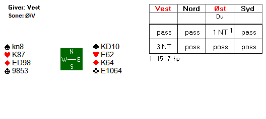 Dermed er vel den reelle sjansen at ruteren gir fire stikk. Eller ser du noen tilleggssjanser?