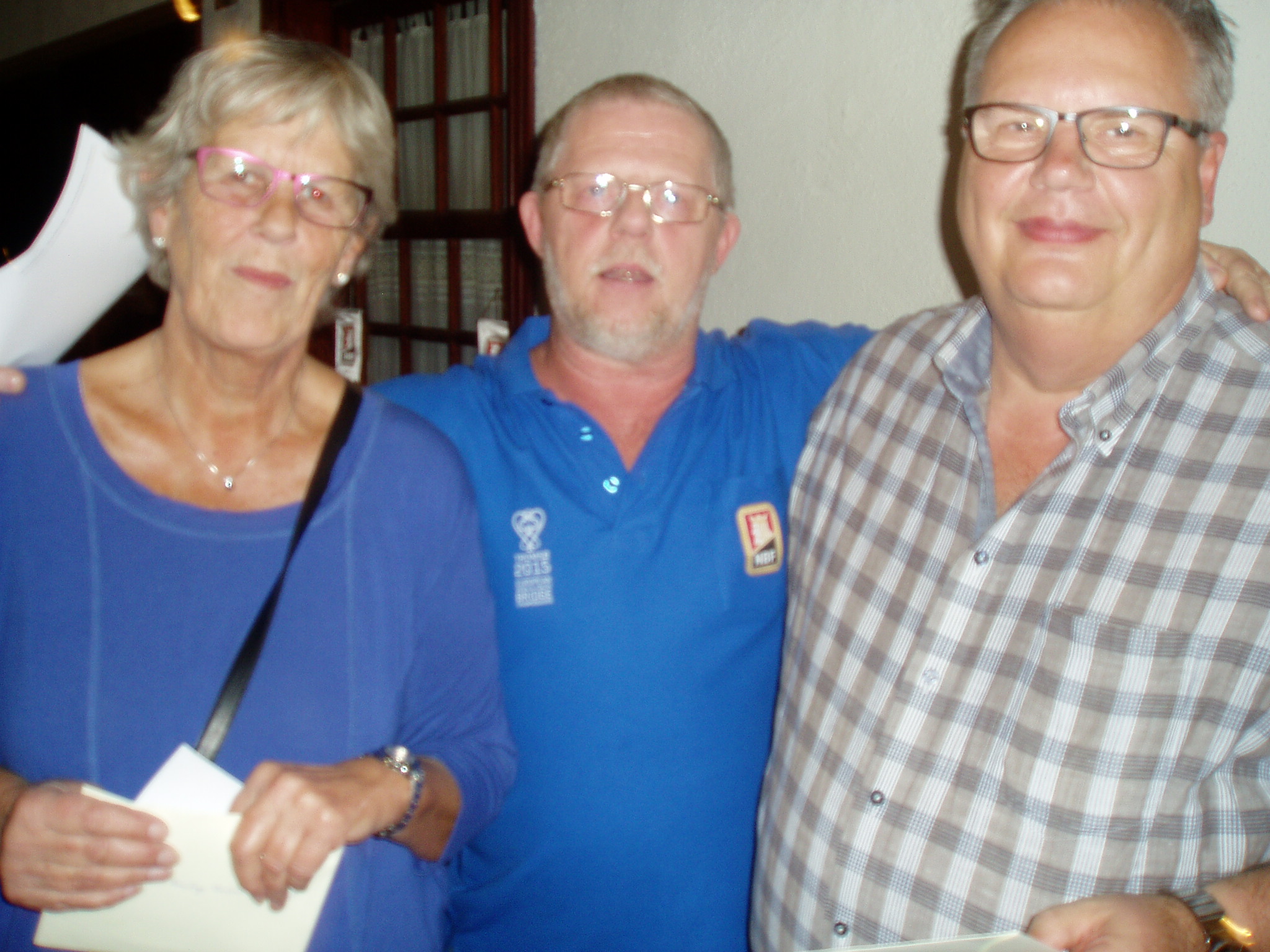 Vinnerne i B-puljen Per Watz, Nesodden og Anita Skaldebø, Gressvik BK. 2.plassen gikk til Grete Mo Storm og Trevor Storm, Sarpsborg BK. Sammen med turneringsleder Tom Danielsen.