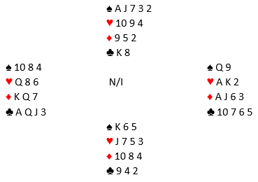Nøtterøy meldte seg fra til 6 hjerter, mens Horten ved Svein Harald Riisnæs og Tom Søren Nilsen meldte seg elegant fram til toppkontrakten på følgende måte: