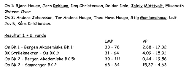 Her er resultata med os-lag involvert: