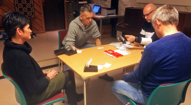Bjørn og Frode vann sisterunden og dermed spelekvelden, Torhild og Reidar blei nummer tre.