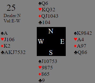 Mot slutten hadde New Zealand sitt lag en eventyrlig flyt og kom med til sluttspillet som fjerde best plasserte lag etter aldri tidligere i turneringen å ha vært på topp-8. Her stod Martin Reid og Peter Newell på hele veien til 7 kløver som Ø/V. Det er en bra kontrakt med tolv sikre stikk og noen bra muligheter for det trettende. Hvis sparfargen hadde vært fordelt 4-3 kunne den femte sparen ha blitt trumfet god. Da det ikke lyktes måtte mer til, og det satt som det skulle. Et meget viktig kort er ruter 9! Siden nord hadde utstyrt seg med K-Q i hjerter og ruter Q-J-10 ble han ganske automatisk skviset i rødfargene for +2140, en score som ble kopiert på litt under 20% av de andre bordene.