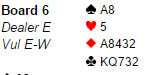 Fire av 13 par Øst-Vest var I 6 hjerter med kortene over (det meldes hardt I klubben!), men her er det umulig å få 12 stikk. Melder du 4 hjerter og får 11, belønnes du med delt topp på spillet.