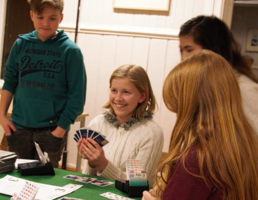 Onsdag 1. mars hadde elevene som har gjennomført kortspilløktene en liten turnering. Vi spilte 3 bords singel hvor Terje Aa og jeg steppet inn for å få fulle bord. Inger hadde en like stor gruppe med lynbridge for foreldre, klassevenner som ikke som ikke hadde vært med tidligere og søsken som hadde lyst til å spille kort.