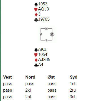 3 hj= 2 sp+ 3 hj, 3 sp= 3 sp+ 2 hj og 3 NT viser 3-3 i major.
