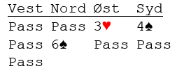Noen steder åpnet øst med 4 hjerter, og ved en god del bord ble sluttkontrakten 5 eller 4 spar.